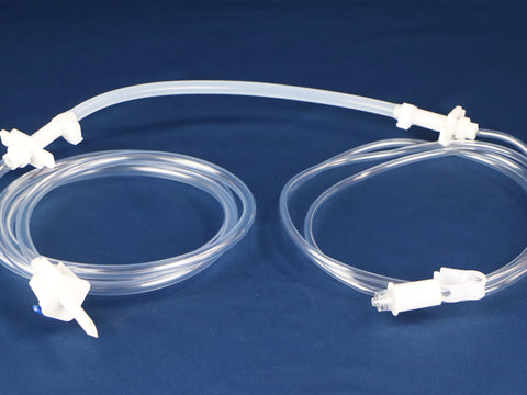 Both tube sets are sterilized using Ethylene Oxide, following ANSI/AAMI/ISO 11135 standards, to achieve a sterility assurance level (SAL) of 10^-6.