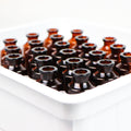 1 Nest & Tub = 24 units; 10 packs = 240 units (10 less than a complete 250-unit batch). These vials provide nearly a full 250-unit batch while minimizing glass-to-glass contact.